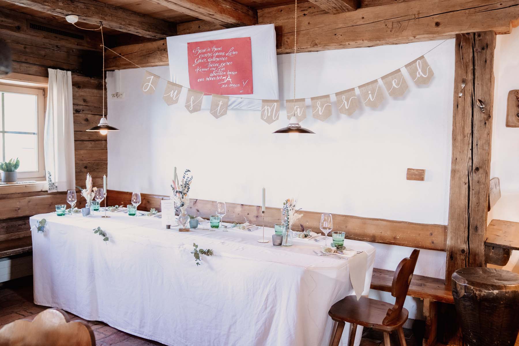 Unsere sonnenverwöhnte Terrasse ist ein begehrter Ort für standesamtliche Trauungen mit einem atemberaubenden Bergpanorama. Das großzügig gestaltete Restaurant bietet auf zwei Etagen Platz für 50 bis 120 Personen, ideal für große und kleine Gesellschaften. Feiern Sie in einem Ambiente, das Natur und Komfort stilvoll vereint.